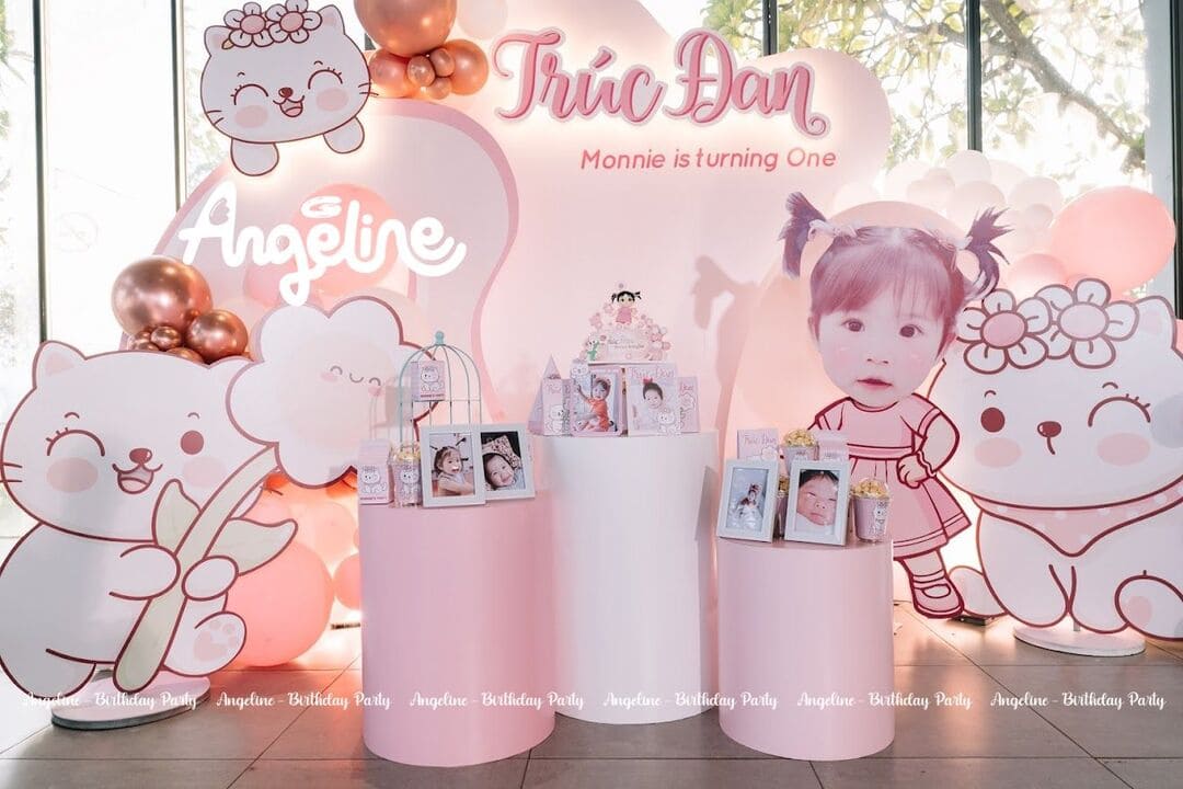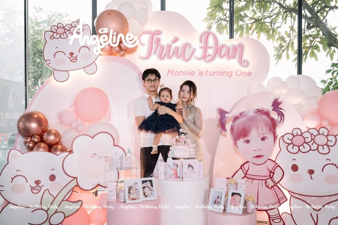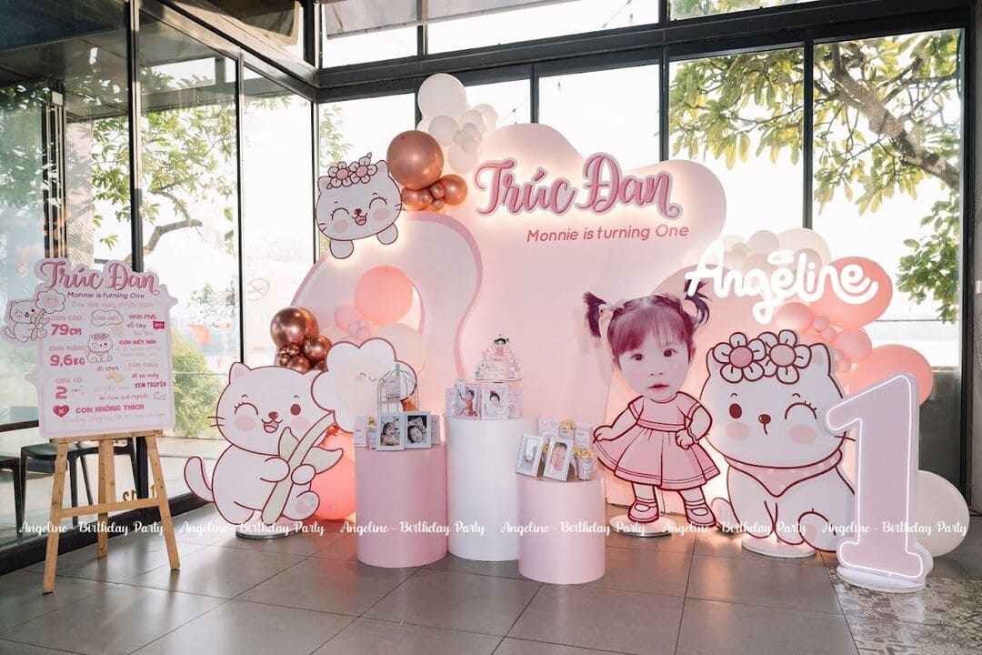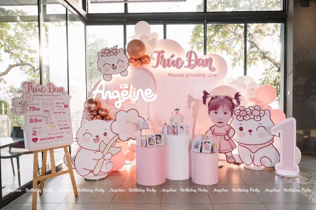 Sinh nhật tròn 1 tuổi của bé gái luôn là một cột mốc thật đặc biệt. Với concept Pink Dream, Angeline đã mang đến cho bé Trúc Đan một không gian ngập tràn sắc hồng ngọt ngào, đáng yêu và đầy kỷ niệm. Từ backdrop lấp lánh, bảng milestone tinh tế đến chiếc bánh kem đồng bộ, mọi chi tiết đều được thiết kế tỉ mỉ để lưu giữ khoảnh khắc đầu đời trọn vẹn và ý nghĩa.