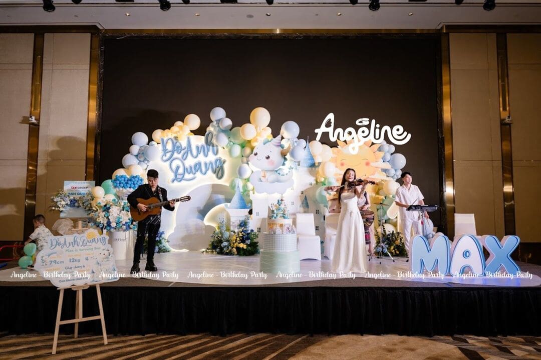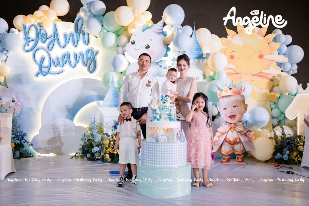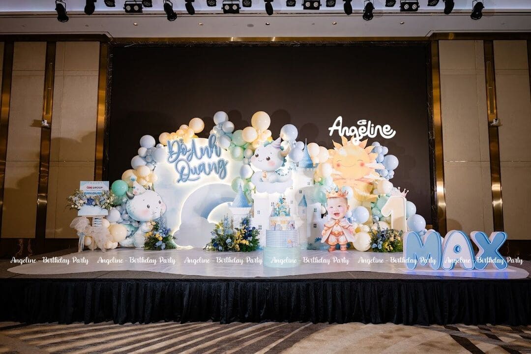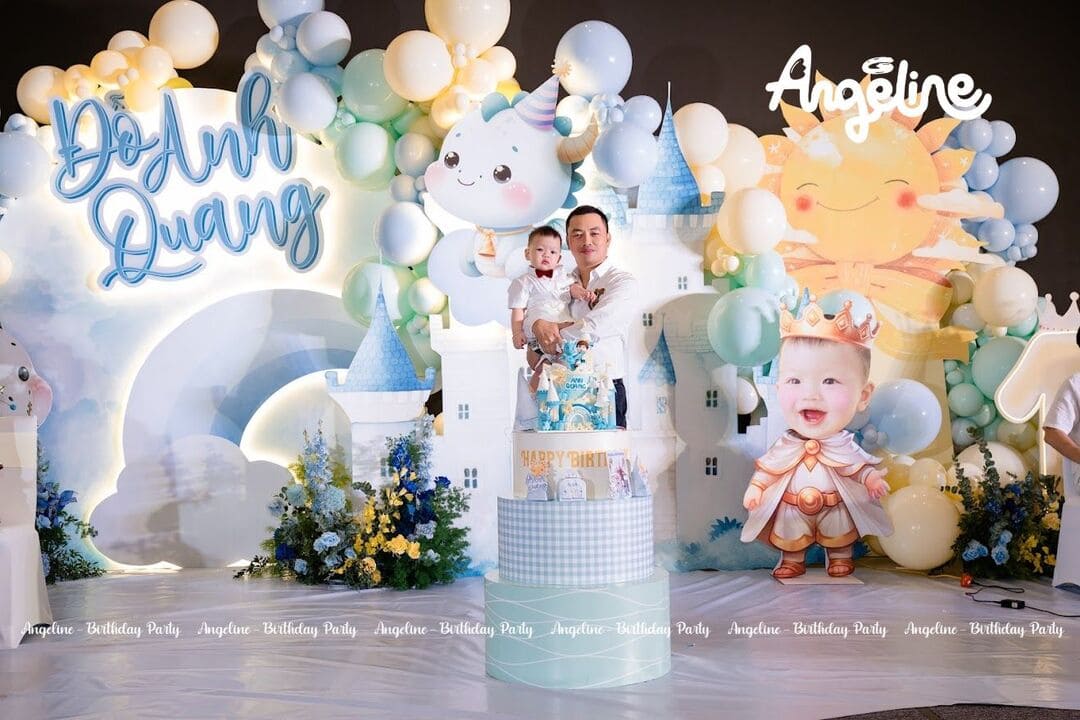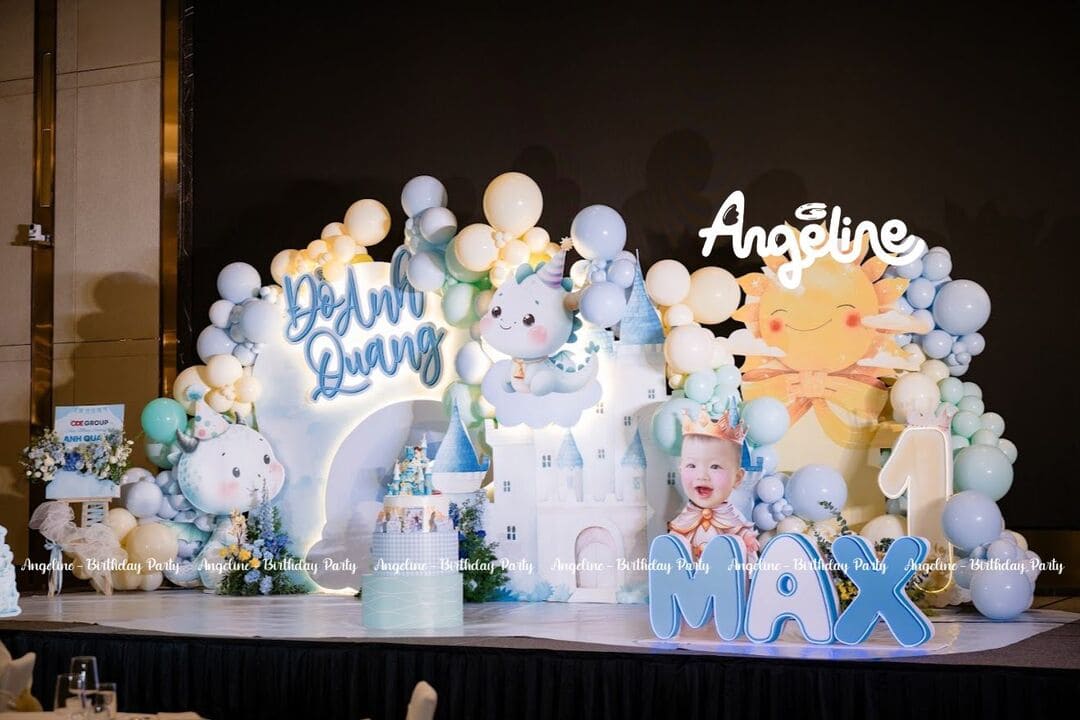 Sinh nhật tròn 1 tuổi của bé Max – cậu bé Đỗ Anh Quang – đã trở thành một ngày thật đặc biệt khi được tổ chức như một lâu đài mơ ước. Với chủ đề “Hoàng tử nhỏ”, bữa tiệc không chỉ đánh dấu hành trình 12 tháng khôn lớn mà còn là món quà tinh thần đầy yêu thương mà gia đình dành cho bé. Angeline đã đồng hành để biến không gian thành một câu chuyện cổ tích, nơi mọi khoảnh khắc đều được lưu giữ trọn vẹn.