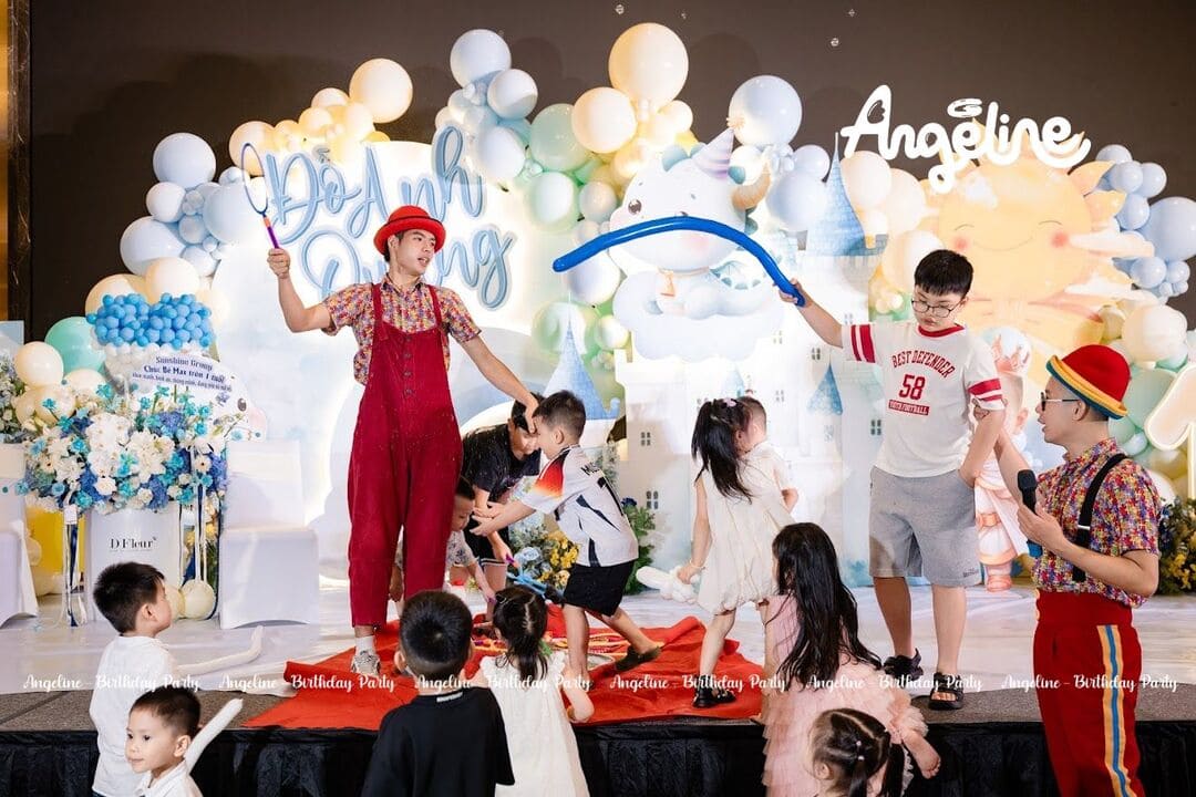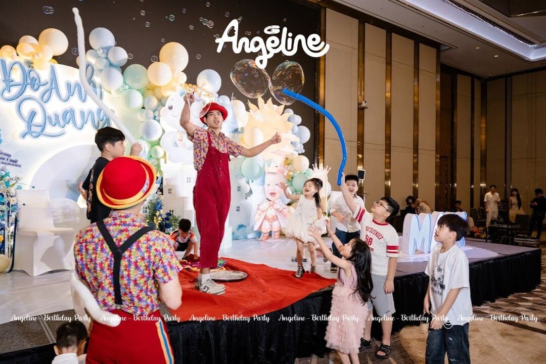 Phần hoạt náo của chú hề bong bóng mang đến những tràng cười giòn giã. Từ những quả bong bóng được tạo hình thành con vật ngộ nghĩnh đến trò chơi tương tác, mọi chi tiết đều khiến trẻ nhỏ vô cùng thích thú. Người lớn cũng hào hứng tham gia, góp phần làm không khí thêm náo nhiệt.