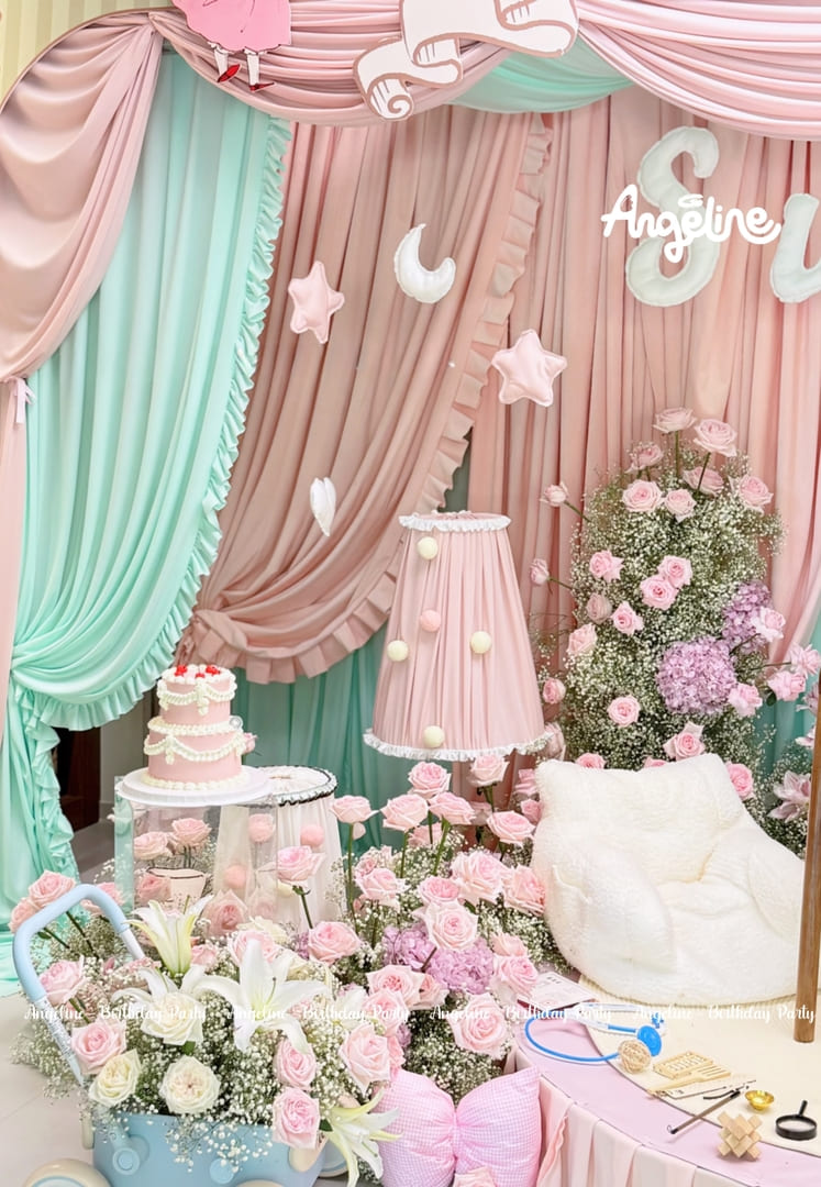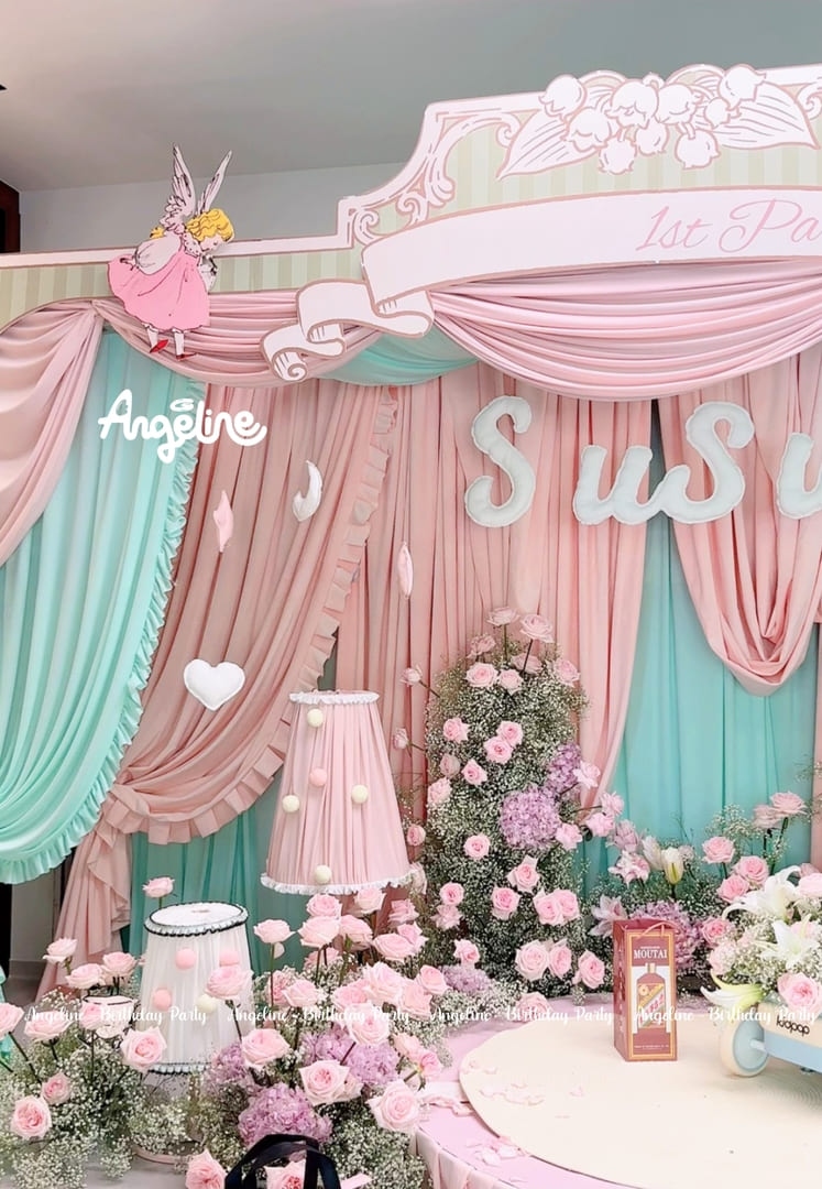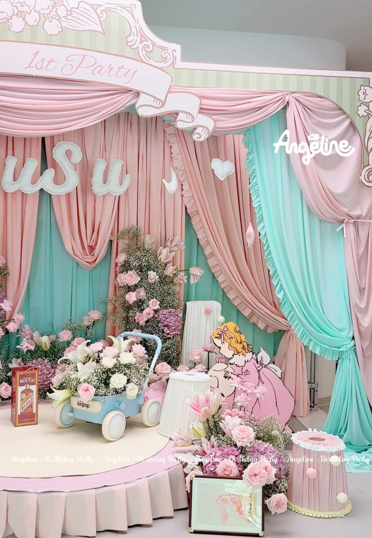 Sinh nhật đầu đời là kỷ niệm duy nhất trong hành trình tuổi thơ, nơi yêu thương và hạnh phúc được dệt nên bằng từng chi tiết nhỏ. Với concept “The Fairytale Tea Room”, Angeline mang đến không gian ngọt ngào, lung linh như cổ tích, giúp bé và gia đình có một trải nghiệm trọn vẹn. Từ màu sắc pastel tinh tế, cách trang trí tỉ mỉ đến dịch vụ tận tâm, mọi yếu tố đều được kết hợp hoàn hảo để tạo ra buổi tiệc đáng nhớ.