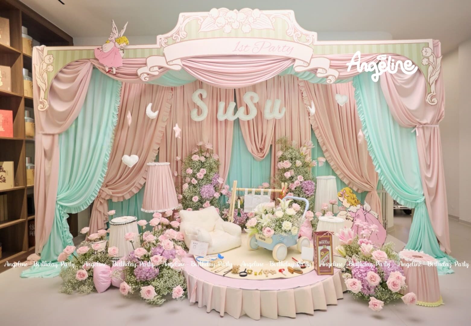 Meta description: Biến khoảnh khắc đầu đời của bé yêu thành một giấc mơ cổ tích ngọt ngào cùng concept “The Fairytale Tea Room” độc đáo từ Angeline. Phong cách pastel dễ thương, tinh tế và tràn ngập yêu thương đang chờ đón bé tại bữa tiệc sinh nhật tuyệt vời này!